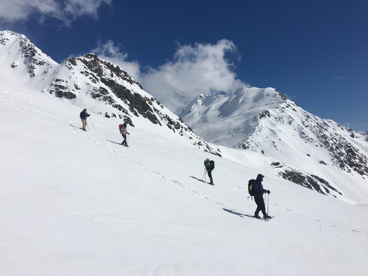 Départ matinal avec raquettes aux pieds depuis l’hospice. Direction Hopsche (2048 m) où nous traversons sous le Tochuhorn (2661 m). Nous remontons ensuite le vallon jusqu’au col intermédiaire Üsseri Nanzlicke situé à 2600 m. En fonction des conditions, nous pourrons rejoindre le sommet du Spitzhorli (2737 m) qui nous offre une vue imprenable sur la vallée du Rhône. Redescente par le même itinéraire jusqu’au Col du Simplon.